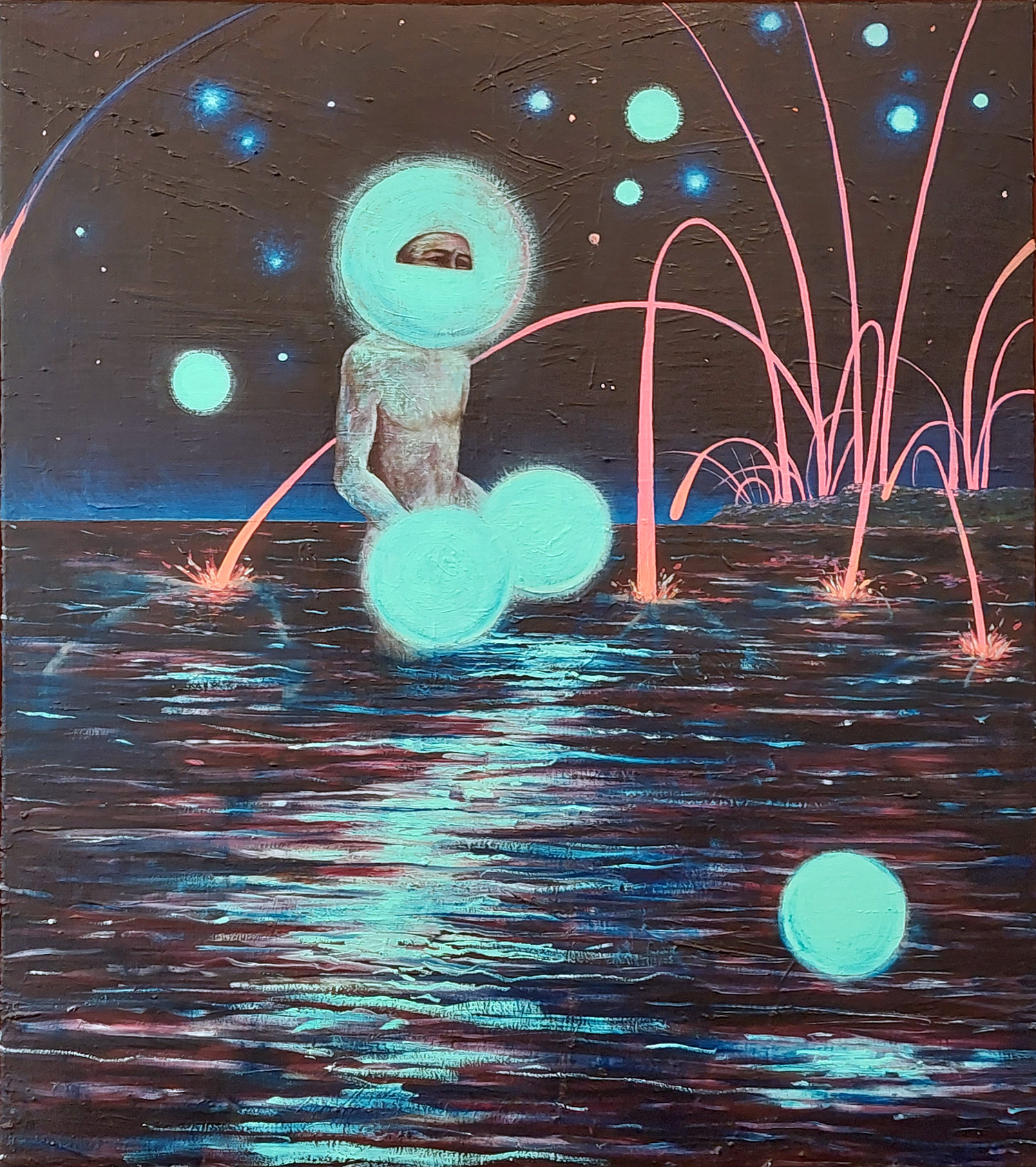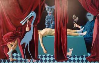 Kerstin Junker „Zaklinacz” („Der Verzauberer”), olej na płótnie, 2017. Galerie Holger John. Drezno 2022