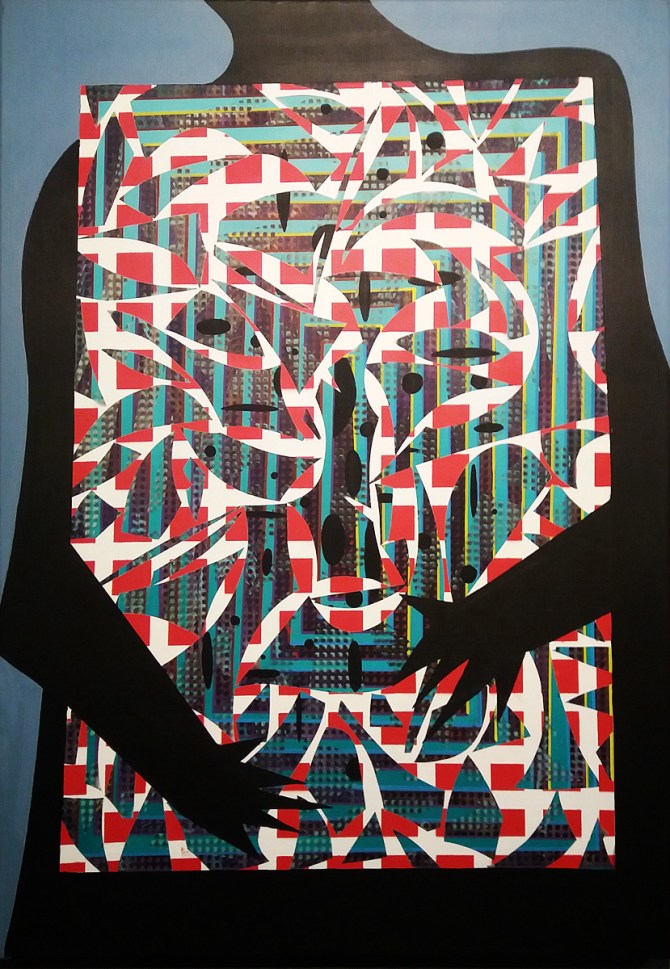 Lech Margasiński (bez tytułu), 100×70 cm, technika mieszana, płótno, 2017. Wystawa „Samotność jest złudzeniem”, Galeria Latarka. Budapeszt 2017