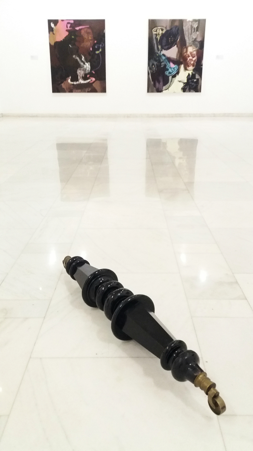 Alexandra Baumgartner „Symbioza”(„Symbiosis”), nogi od fortepianu, 2016. Wystawa „Noul romantism negru / New Black Romanticism”, The National Museum of Art of Romania. Bukareszt 2017