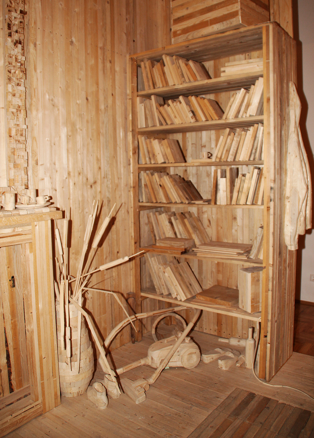 „(…) When in 2010 he was completing Bernsteinzimmer, based on his father’s shed, elements of science-fiction were already present. The terrestrial living space of the Solaris astronaut was able to manifest itself in a world shaped by human patterns. Although the new space is closer to Stalker’s Zone. Emotions and desires are mixed with reality; the weary requisites of the upper-middle class way of life are standing in opposition to the shadow play of the fictional world.