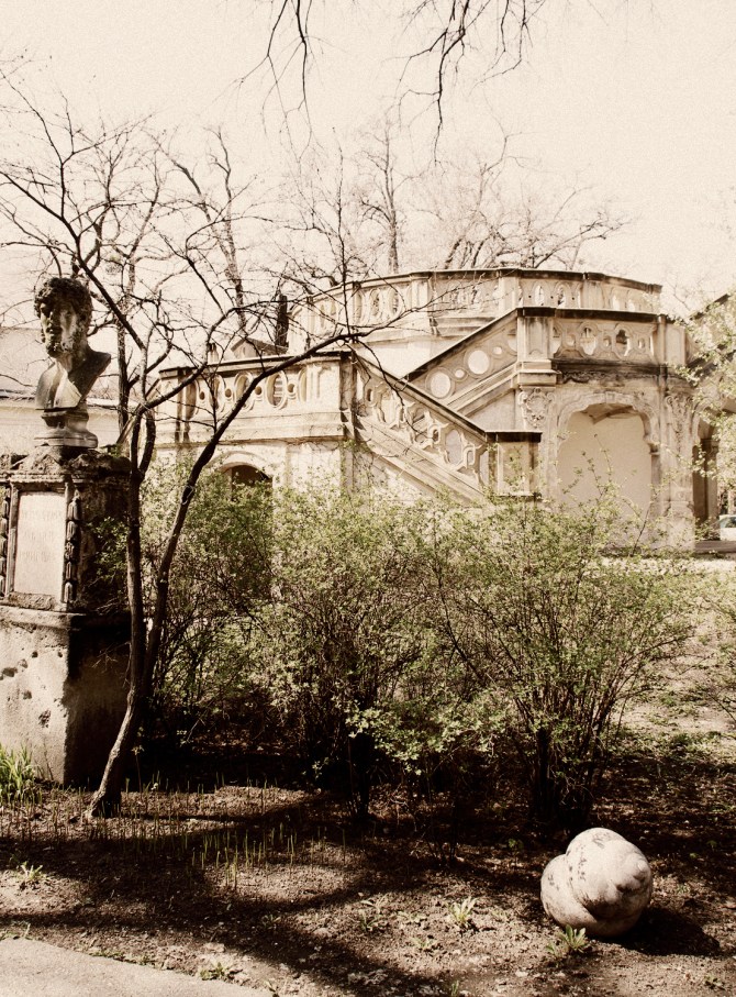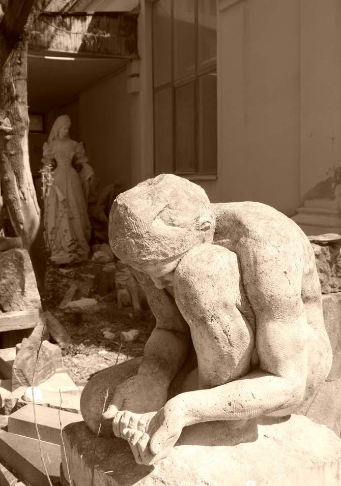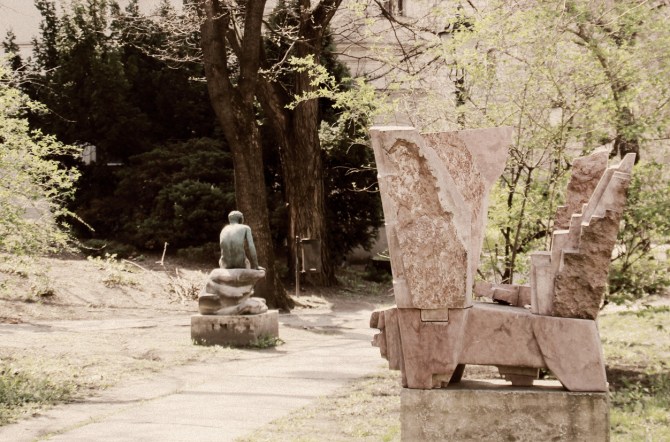 Epreskert Art Colony (“Mulberry garden”), mysterious, secluded sculpture park and artists ateliers since 1890. Part of the Hungarian University of Fine Arts campus. Budapest 2018.