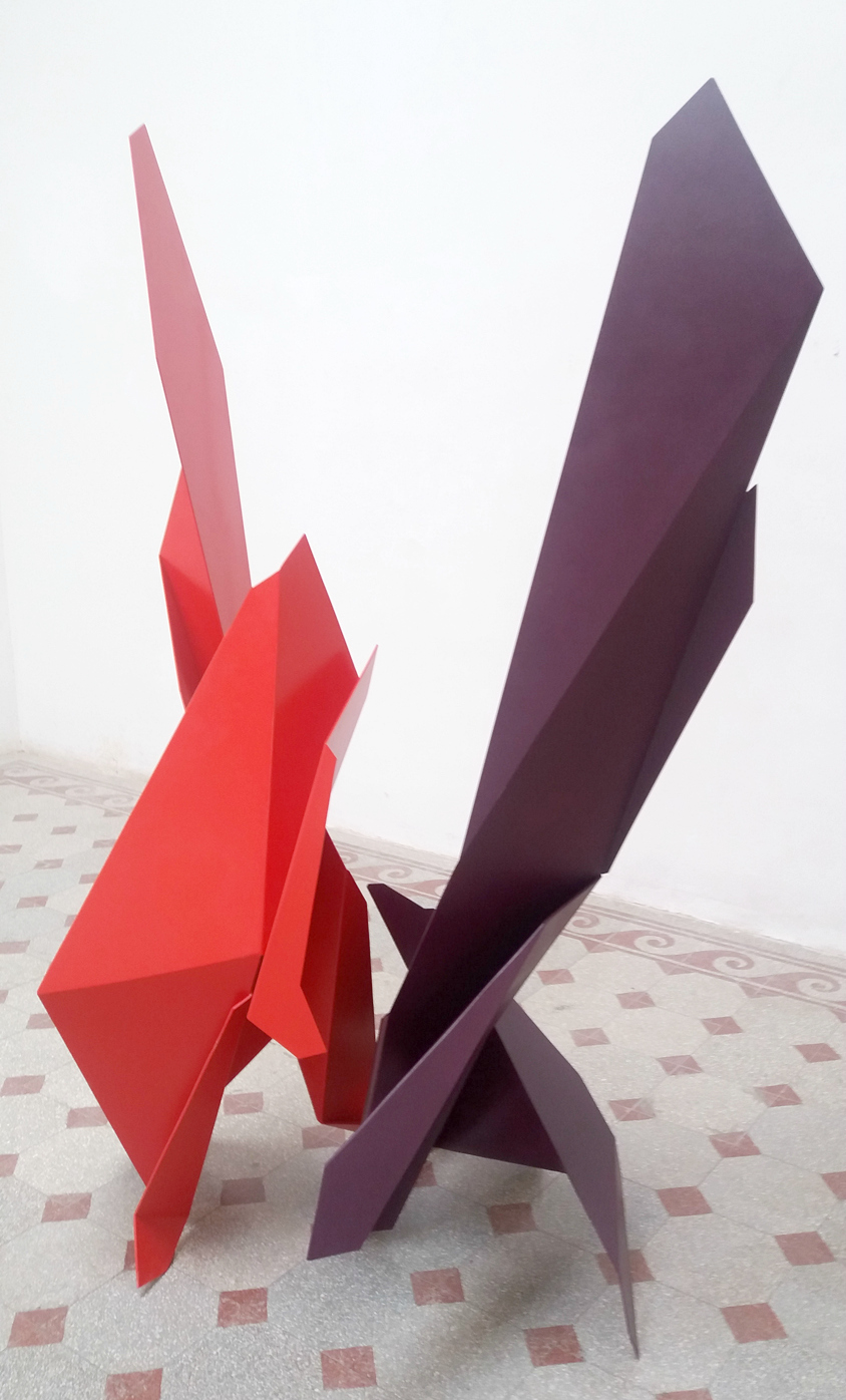 Antal Plank, metalowe rzeźby na wystawie „Organikus Geometria”, Epreskert. Budapeszt 2018