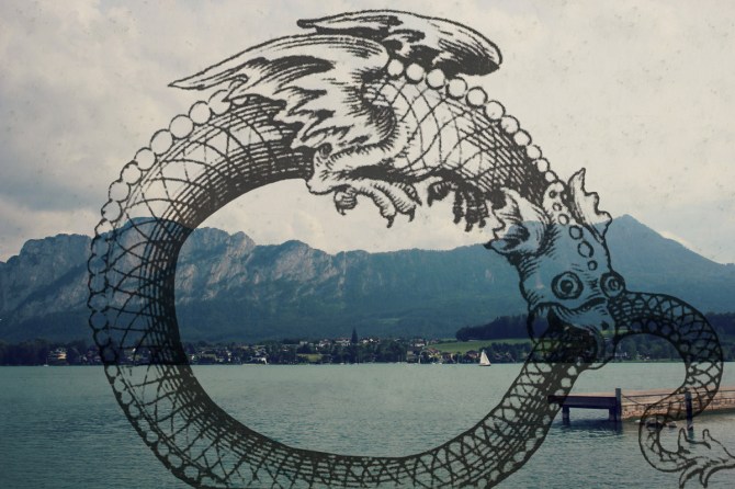The Invisible Mountain of the Magi with hidden alchemical treasure. The Holy Mountain, Mountain of the inner world in Thomas Vaughan’s Lumen de Lumine (1693). Ilustracja w: Alexander Roob Alchemy and Mysticism: The Hermetic Museum (1997)