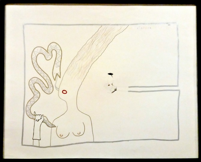 András Wahorn „Woman with a Snake”, Indian ink and crayon on cardboard (detail below), 1986. Hungarian National Gallery. Budapest 2018