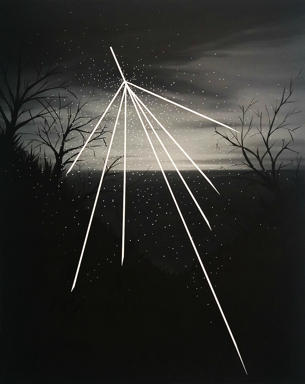 „Spadające gwiazdy”, 120×100 cm, olej na płótnie, 2018