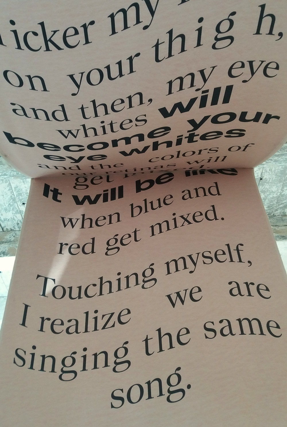 Marie Tučková (Ursula Uwe) „Monuments of Love”, druk cyfrowy, 1060×707 cm, 2018. Wystawa „Liquid Bodies”, aqb Project Space. Budapeszt 2018