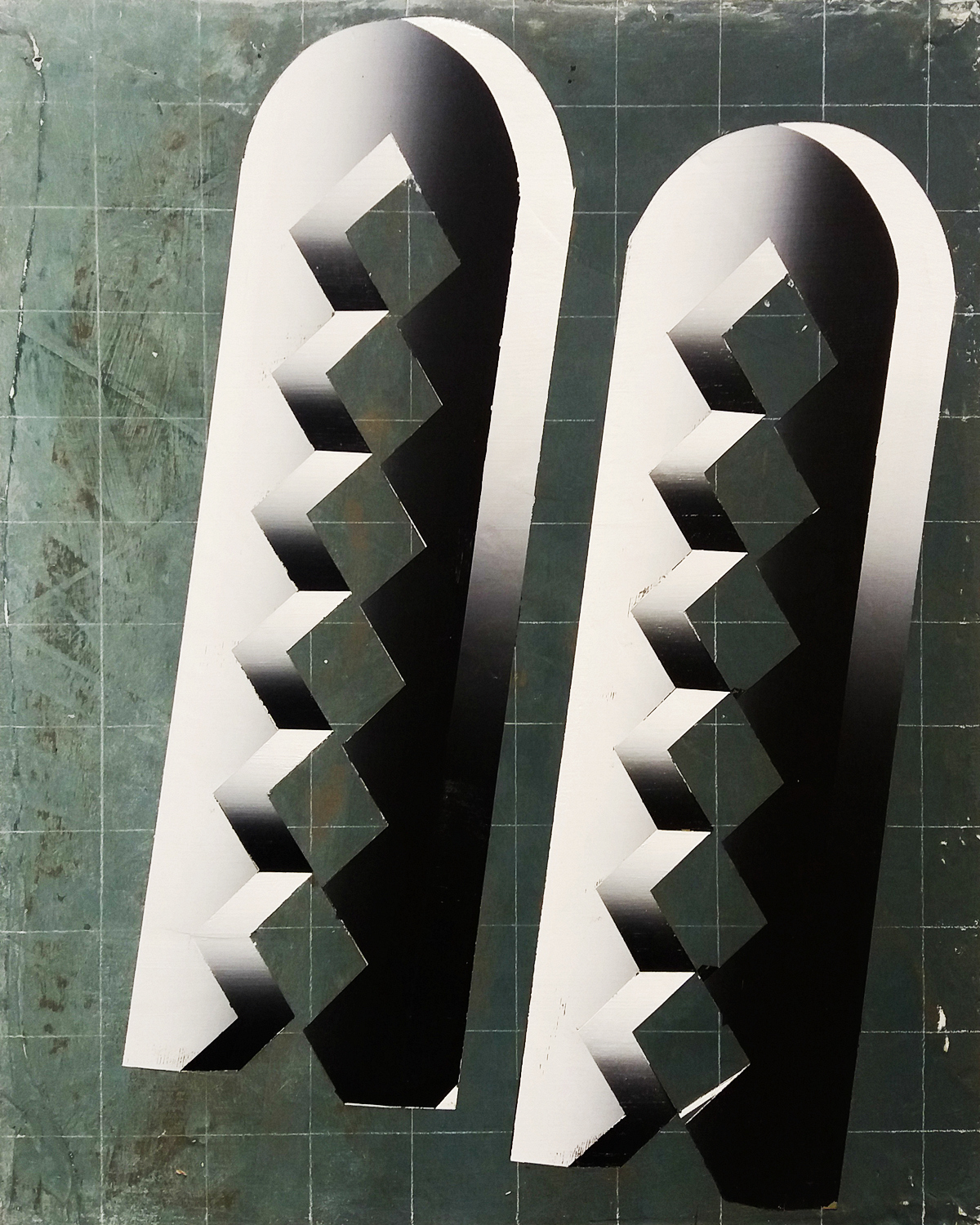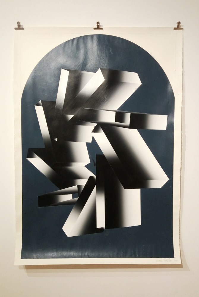 Vladimir Houdek (Bez tytułu II), gwasz na papierze, 200×140 cm, 2018. Wystawa „Articulations”, Glassyard Gallery. Budapeszt 2018