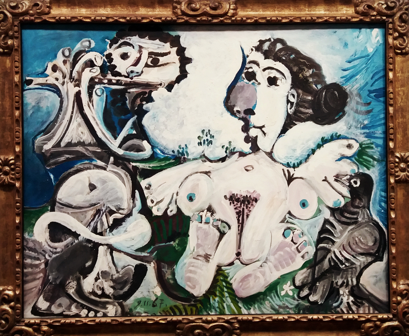 Pablo Picasso „Naga kobieta, flecista i ptak”, olej na płótnie, 1967. Albertina, Wiedeń 2018