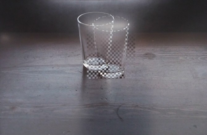 Hajnalka Tarr „Dwie szklanki” („Két pohár”), fotografia na tkaninie, 50×70 cm, 2012. Kolekcja Instytutu Sztuki Współczesnej w Dunaújváros (ICA-D). aqb Project Space, Budapeszt 2018