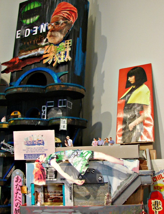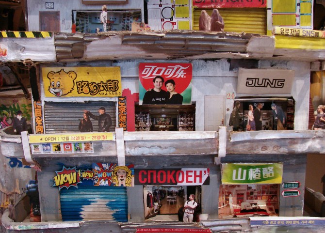 Gábor Kerekes „Hanami”, instalacja, kartonowe pudła, gazety, 280x280x120 cm, 2018. Wystawa „Miasto vs przyroda (Város vs. természet)”, Deák17 Galériá / FKSE, Budapeszt 2018