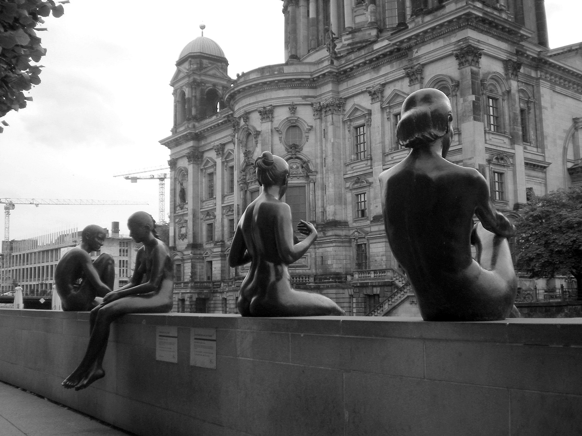 Wilfried Fitzenreiter, „Three girls and a boy” (Drei Mädchen und ein Knabe), 1988. Rzeźba nad Sprewą przy Katedrze Berlińskiej. Berlin 2014