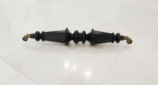 Alexandra Baumgartner „Symbioza”(„Symbiosis”), nogi od fortepianu, 2016. Wystawa „Noul romantism negru / New Black Romanticism”, The National Museum of Art of Romania. Bukareszt 2017