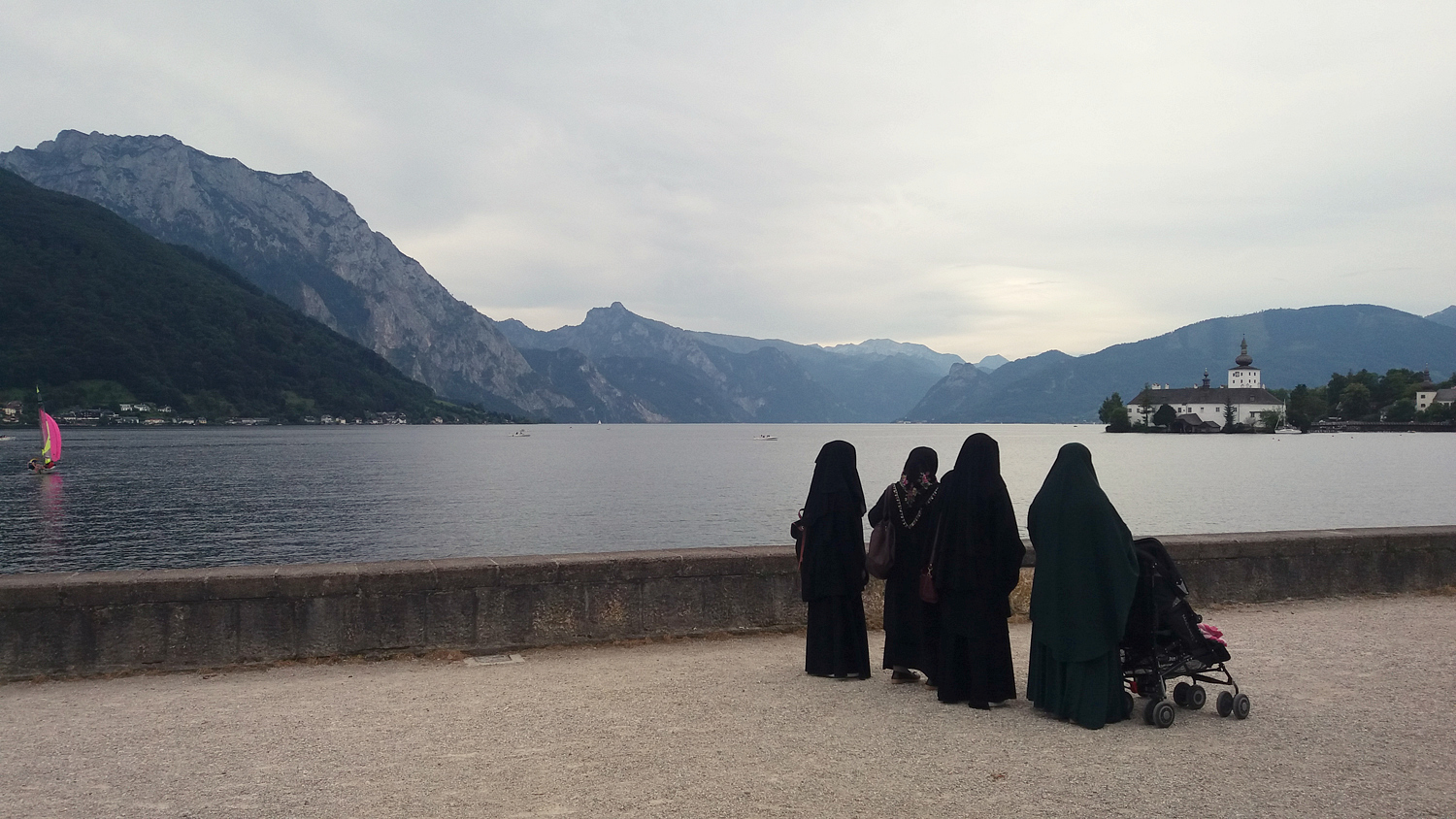 Średniowieczny zamek Ort (Schloss Ort) na jeziorze Traunsee w Alpach. Gmunden (Górna Austria) 2016