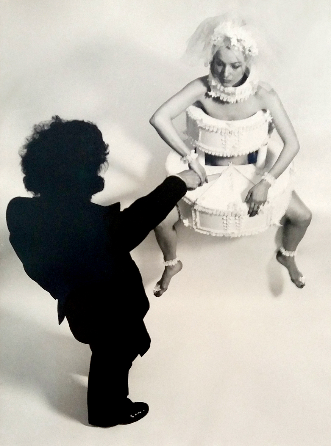 Penny Slinger „Bride and Groom – Ceremonial Cutting of the Cake”, fotografia, 1973. Wystawa: „Woman. Feminist Avant-Garde of the 1970s”, Muzeum Sztuki Współczesnej (MUMOK), Wiedeń 2017