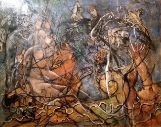 Jan Możdżyński „Mistyka odmienności” (“Bizarre Mystique”), olej na płótnie, 2018. Wystawa 13. Konkursu Gepperta, galeria BWA Wrocław Główny. Wrocław 2020