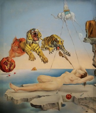 Salvador Dalí „Dream Caused by the Flight of a Bee around a Pomegranate a Second before Waking”, olej na płótnie, 1944. Wystawa „The Surrealist Movement from Dalí to Magritte – Crisis and Rebirth in 1929”, Węgierska Galeria Narodowa (Magyar Nemzeti Galéria). Budapeszt 2019