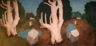 Josef Šíma „Podwójny krajobraz, elektryczna burza” (“Double Landscape, Electric Storm”), olej na płótnie, 1928. Wystawa “The Surrealist Movement from Dalí to Magritte – Crisis and Rebirth in 1929″, Węgierska Galeria Narodowa (Magyar Nemzeti Galéria). Budapeszt 2019