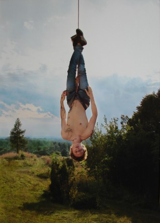Máté Orr „Białe skarpetki” („Fehér zoknik”), olej i akryl na płótnie, 180×280 cm, 2023. Várfok Gallery. Budapeszt 2023